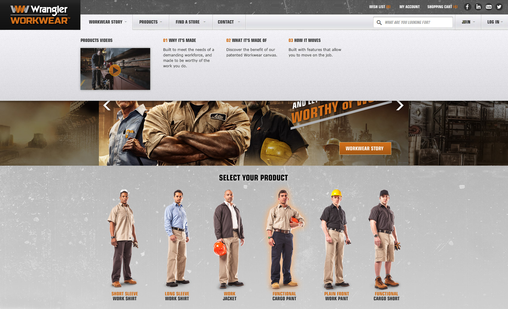 Wrangler Workwear Web Design Client Wrangler Jeans Role Art Direction / Design Date Nov 2013 NextBloom Serif